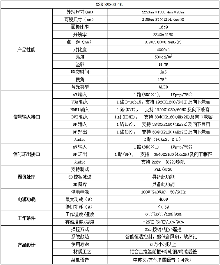 新視銳98寸4倍高清液晶顯示器性能參數(shù):