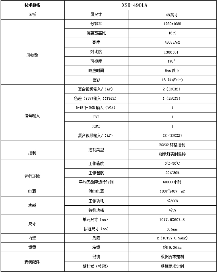 新視銳49寸超窄邊3.5mm拼縫液晶拼接單元產品參數: