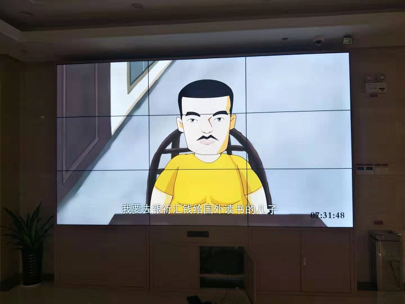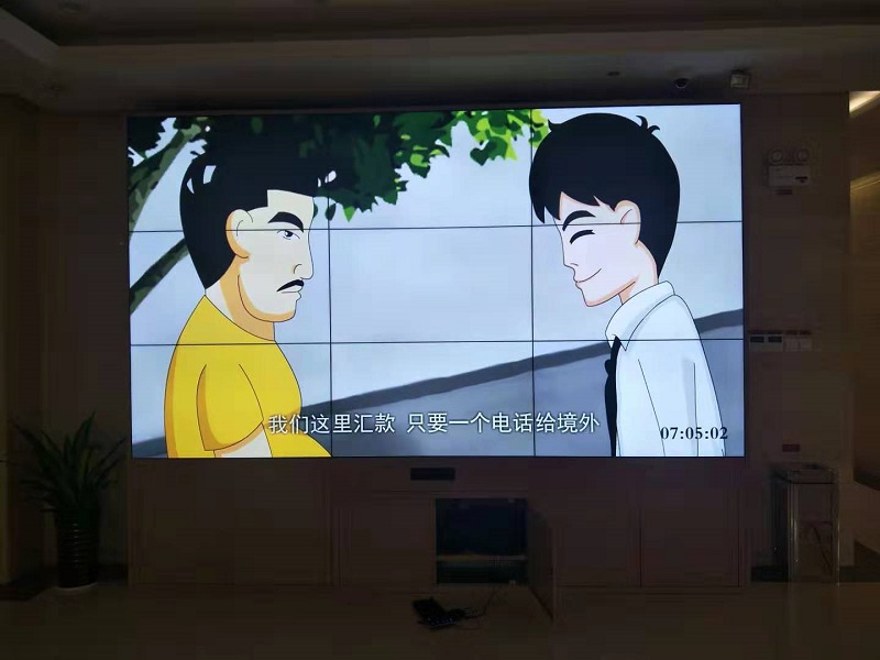 此次項(xiàng)目采用3.5mm拼縫設(shè)計(jì)完成3×3拼接顯示設(shè)備,在合肥農(nóng)商銀行大廳完成安裝搭建。