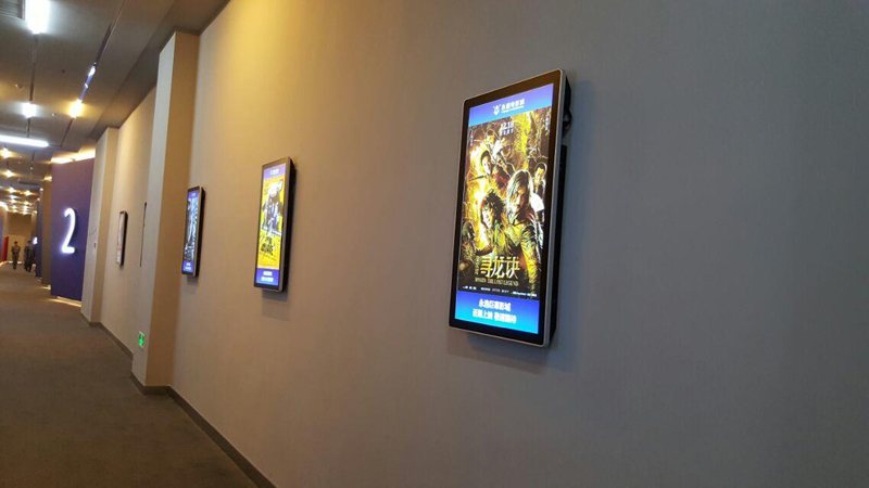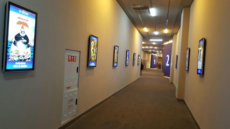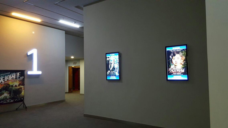 遂寧某電影院,為打造不一樣的看電影氛圍,宣傳新電影及電影上映時間等,新視銳根據(jù)客戶需求,采用一批豎式42寸廣告機(jī),安裝在去往各個電影院內(nèi)部走廊倆邊的墻面上的方案。通過廣告機(jī)播放著當(dāng)日要播放的電影簡介以及大力宣傳即將上映的各種大片,為廣大喜愛電影的青年男女們可以提前做好選擇。