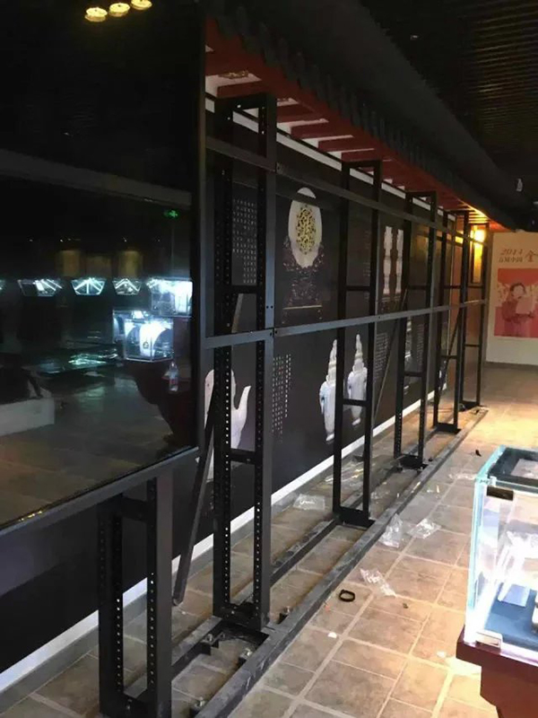 3.所有內部設施安裝完畢后開始安裝液晶拼接屏,由下往上安裝。