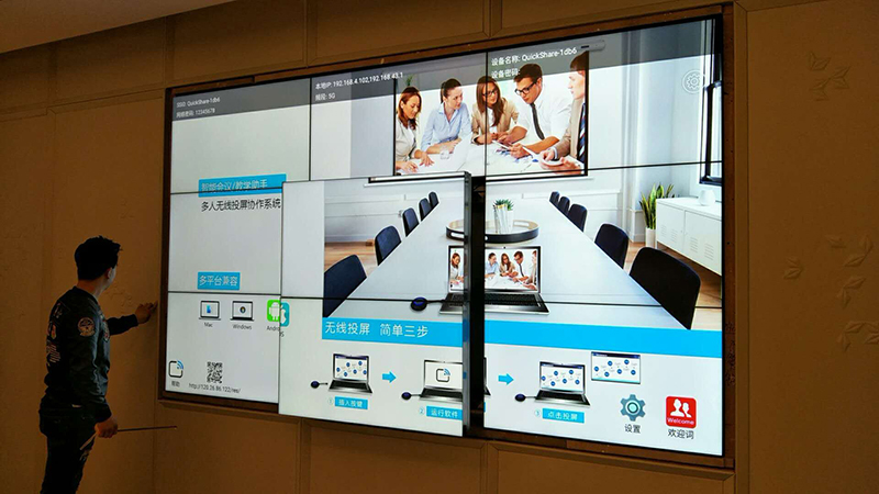 此工程所用材料由深圳市新視銳有限公司(m.gqcyw.cn)獨家承制,其中包括: 液壓式前維護(hù)壁掛架,1進(jìn)16出高清HDMI分配器,一線品牌HDMI工程信號線材,控制線材,電源線,三星46寸超窄邊3.5mm拼縫液晶拼接單元,無線投屏系統(tǒng)組件等。