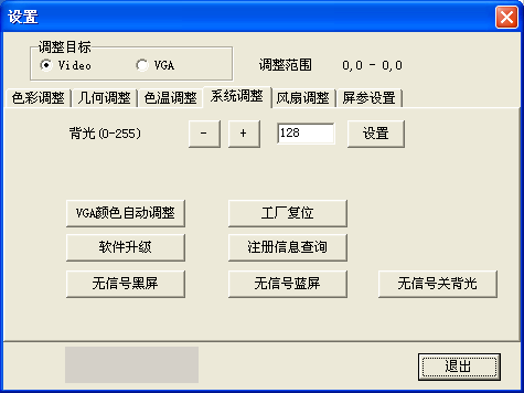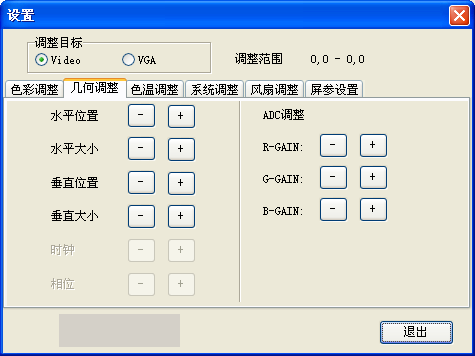在本菜單里,有Video和VGA兩個選項,在設(shè)置時選擇不同的信號源進行設(shè)置
