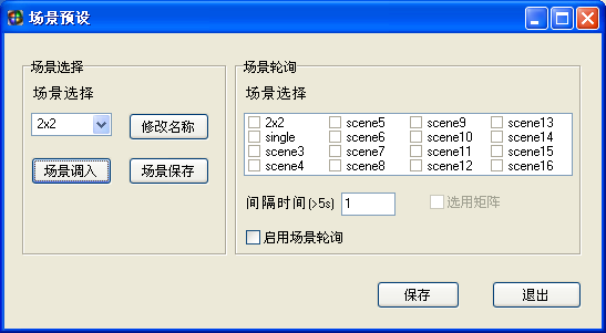 支持16種場景模式保存,可以更改模式名稱。選擇要保存的模式,設(shè)置完成后點擊“保存模式”。“調(diào)用模式”可以調(diào)用用戶保存過的模式、跟據(jù)有需求用戶的還可以啟用場景輪詢模式